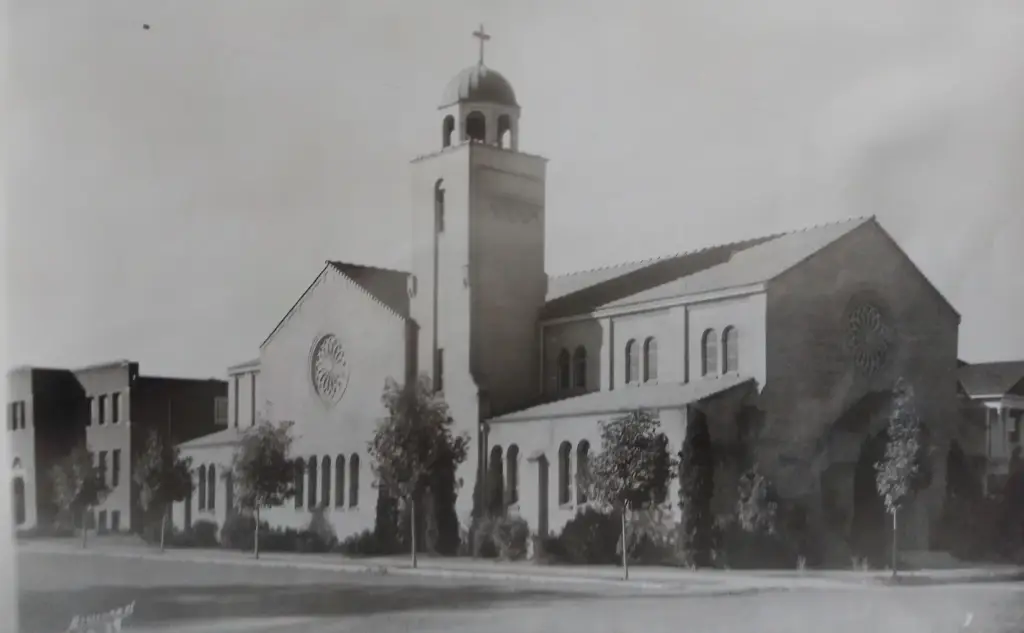 By 1929, the year of the stock market crash, the parish had built both a rectory house and a school serving grades one through six. On December 7th of that year, long-time pastory Father Pypers awoke in the early morning hours to find the church aflame.  The first department worked to save the wooden building, but before it was over, the upper walls and roof had completely collapsed.  The next day, parishioners gathered at the site of the destroyed church and worked together to salvage the alter and pews, which were moved into the school auditorium to create a temporary chapel.  A month later, the congregation met and, after much discussion, voted in favor of biding a new church.  By the end of that first meeting, more than $8,000 had been committed toward the building fund, with another $7,000 to follow in the next few weeks.