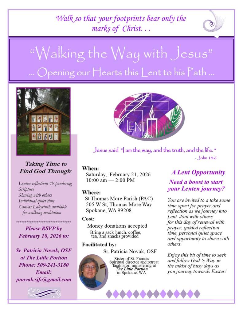 RSVP by February 18 to Sr. Patricia at 509 241-3180 or pnovak.sifc@gmail.com
